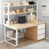 ΓΡΑΦΕΙΟ Η/Υ 3 Συρτάρια 3 Ράφια Μέταλλο Βαφή Μαύρο, MDF Απόχρωση Καρυδί