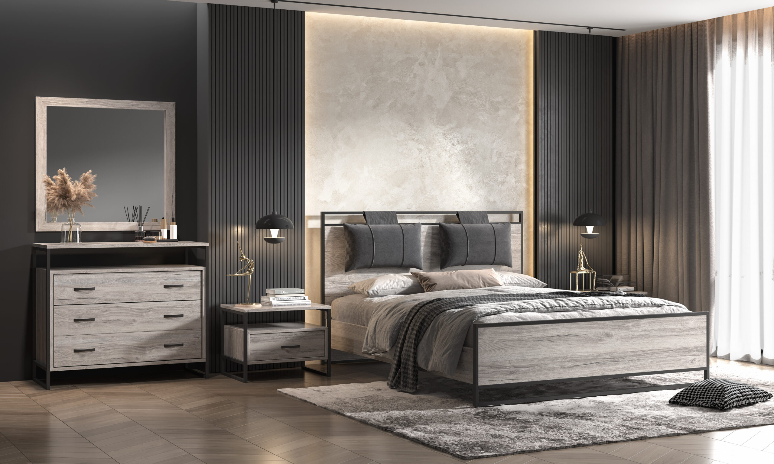 Κρεβάτι Ν 104 σταχτύ με μαύρο ύφασμα 1.60*2.00/1.50*2.00