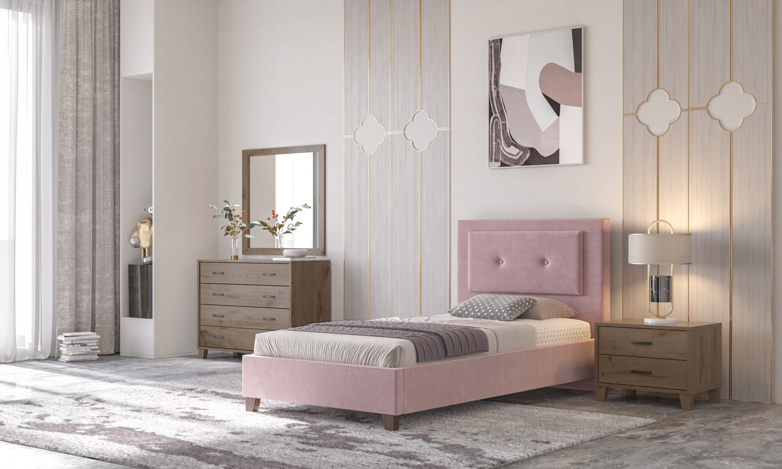 Κρεβάτι Ν 108 χρώμα ροζ με ύφασμα αδιάβροχο και αλέκιαστο για στρώμα 1.60*2.00/1.50*2.00/1.40*2.00