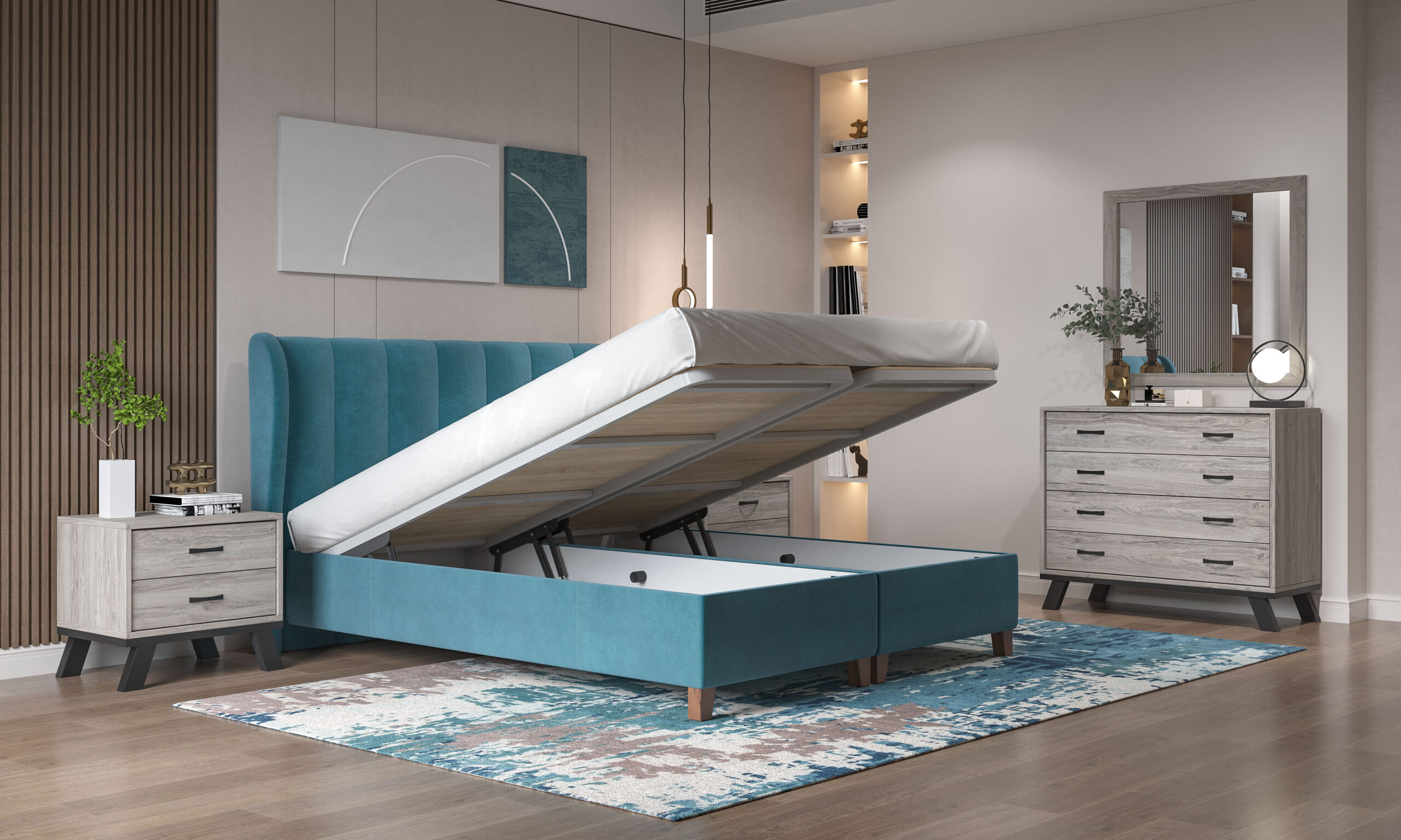 Κρεβάτι Ν83 μπαούλο χρώμα μπλε με αδιάβροχο και αλέκιαστο ύφασμα για στρώμα 1.60*2.00 / 1.50*2.00