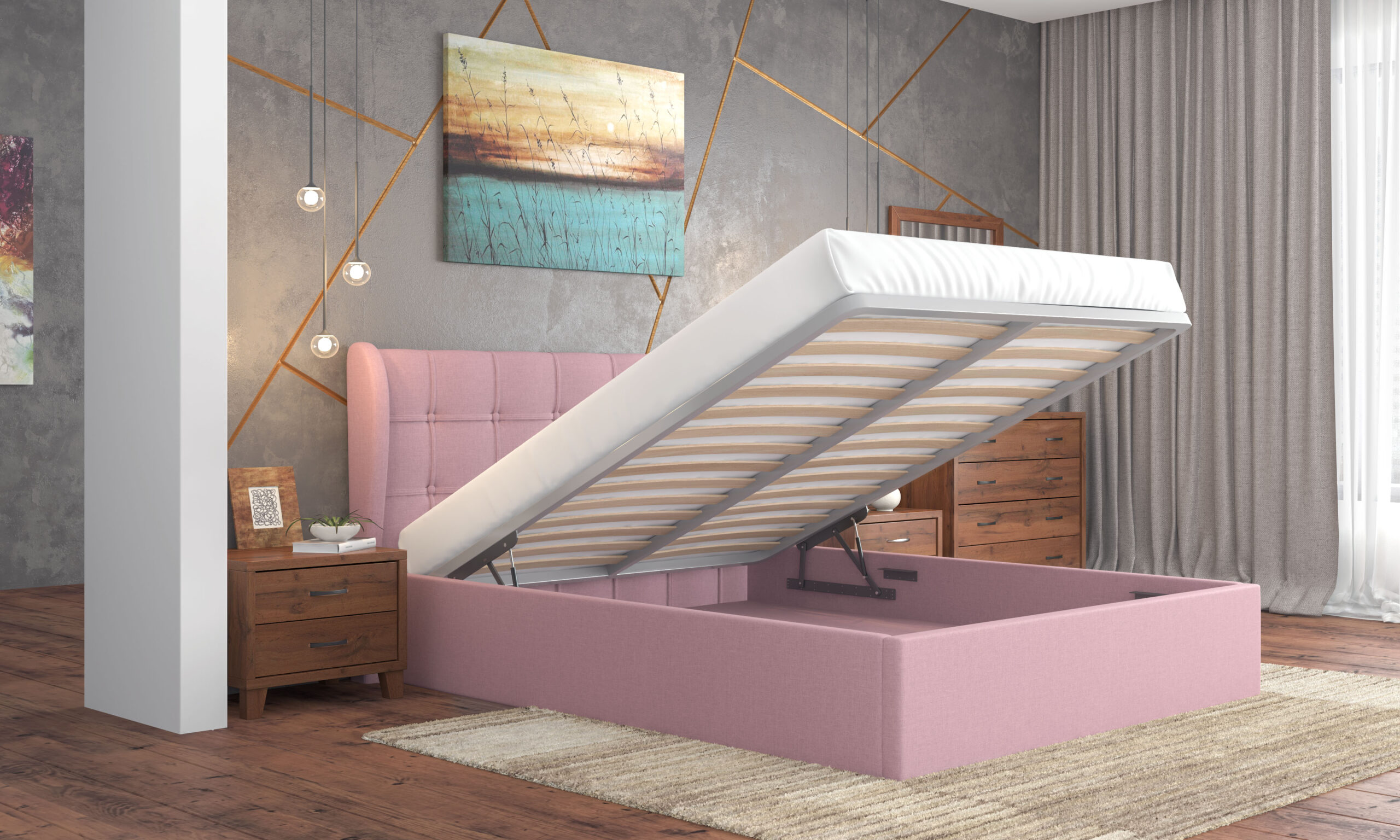 Κρεβάτι Ν 88 μπαούλο με ύφασμα ροζ για στρώμα 1.60*2.00 / 1.50*2.00