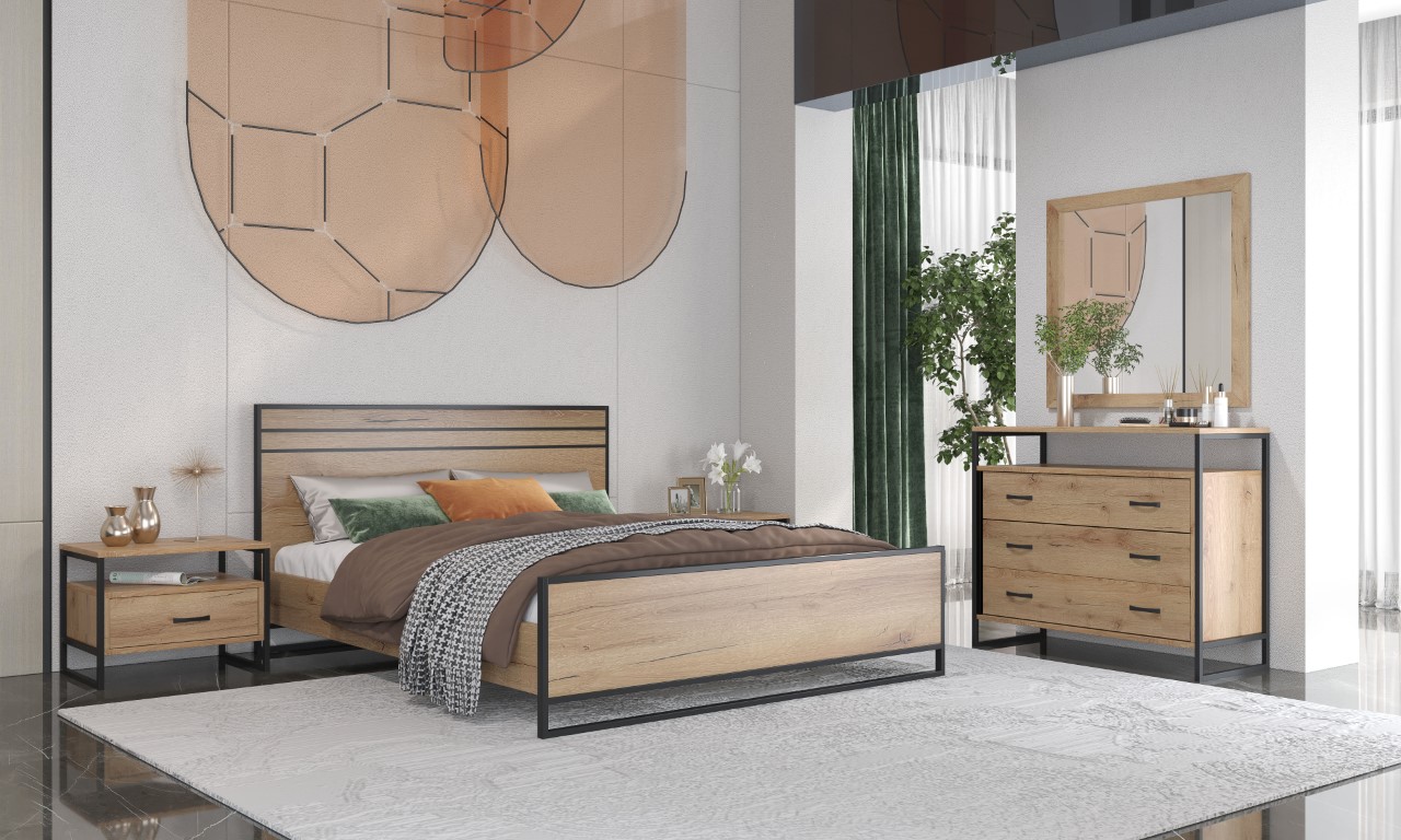Κρεβάτι Ν 98 χρώμα μελί από ξύλο για στρώμα 1.60*2.00 / 1.50*2.00