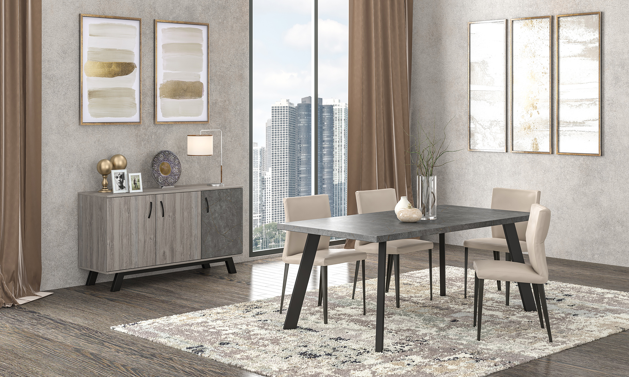 Return To ShopΤραπεζαρία Ν5 σε συνδυασμό μάρμαρο γκρι με σταχτί σε διαστάσεις 158,5*90*78 /1.40*90*78