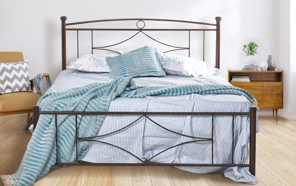 Κρεβάτι μεταλλικό , σετ τάβλες, καπιτονέ στρώμα , κομοδίνο